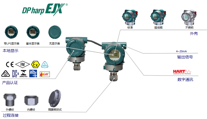 首頁 /產(chǎn)品中心 /EJX-A系列 /EJXC40A數(shù)字遠(yuǎn)傳(DRS)系統(tǒng) EJXC40A數(shù)字遠(yuǎn)傳(DRS)系統(tǒng)由設(shè)置于高壓側(cè)的主傳感器和低壓側(cè)的從傳感器組成,通過DRS專用通信電纜連接和傳輸信號,由主傳感器進(jìn)行差壓計算并輸出4~20 mA模擬信號或者數(shù)字信號。EJXC40A數(shù)字遠(yuǎn)傳(DRS)系統(tǒng)適用于液體、氣體或蒸汽流量的測量以及液位、密度和壓力的測量。 主要特性: 高性能、高精度、高可靠性 DRS專用通信電纜最長可達(dá)45米 多種儲罐類型的信號表征 SIL2 / SIL3認(rèn)證 產(chǎn)品概覽特性可靠性維護(hù)產(chǎn)品規(guī)格資料下載 數(shù)字傳感DPharp數(shù)字傳感器直接輸出數(shù)字信號,不需要對模擬信號進(jìn)行數(shù)字轉(zhuǎn)換,可減少誤差,提供準(zhǔn)確、可靠和穩(wěn)定的測量性能。提供更多信息DRS系統(tǒng)提供更多信息,包括差壓(主變量)、高壓側(cè)壓力和傳感器溫度以及低壓側(cè)壓力和傳感器溫度,為您的生產(chǎn)過程提供更深入的了解。?信號曲線表征信號曲線表征功能適用于補(bǔ)償非線性應(yīng)用的4~20mA模擬輸出信號,可用于例如各類罐體測量和流量測量等,以及輸入壓力與輸出信號對應(yīng)關(guān)系明確的所有應(yīng)用。該功能可設(shè)置多至10段信號曲線,使測量更加靈活便捷。內(nèi)置顯示表內(nèi)置顯示表可顯示所有測量變量(差壓/靜壓/膜盒溫度),以及警報代碼和條形圖等,還可以根據(jù)您的需要進(jìn)行程序化設(shè)置。此外,顯示表運(yùn)行于單獨的回路上,獨立于輸出信號,所以不會受其影響,提供可能更有用的現(xiàn)場信息。堅固耐用的構(gòu)造堅固耐用的構(gòu)造可以延長變送器的使用壽命,幫助您的工廠減少故障。注意:所有結(jié)構(gòu)材料均符合NACE (MR0175 / ISO15156)的材料建議。獨立第三方認(rèn)證EJX-A系列變送器的性能與可靠性已取得國際獨立第三方機(jī)構(gòu)TüV Rheinland與EXIDA的認(rèn)證。功能性安全EJX-A系列變送器均按照IEC61508:2010 (1~7部分)和IEC61511:2004(1~3部分)標(biāo)準(zhǔn)進(jìn)行設(shè)計,并取得認(rèn)證,單臺符合SIL2安全要求,冗余使用滿足SIL3安全要求。使用EJX-A系列變送器,一臺即可滿足生產(chǎn)應(yīng)用與安全要求,無需冗余配置。主動式傳感器技術(shù)DPharp數(shù)字傳感器為主動式傳感器,即使在過程壓力未發(fā)生改變時,仍然不斷地輸出頻率信號。所以如果傳感器發(fā)生故障,變送器能夠第一時間檢測出,不會出現(xiàn)將傳感器故障誤認(rèn)為是過程壓力未變的情況。專利自檢系統(tǒng)專利自檢系統(tǒng)可實現(xiàn)信號的實時反向檢查功能,在變送器傳遞和轉(zhuǎn)換信號的同時,確認(rèn)和檢測計算和轉(zhuǎn)換的正確性。延長校準(zhǔn)間隔時間EJX-A系列變送器擁有的長期穩(wěn)定性,使您在使用過程中可以延長校準(zhǔn)的間隔時間,降低時間成本與維護(hù)費(fèi)用。多種維護(hù)方式EJX-A系列變送器支持通過多種平臺進(jìn)行通訊和維護(hù)。FieldMate是基于PC的通訊平臺,可以對變送器等儀表清單進(jìn)行通訊、調(diào)整、設(shè)置和管理。本地參數(shù)設(shè)置(LPS)功能,無需手操器等通訊設(shè)備即可在變送器本地進(jìn)行參數(shù)設(shè)置和更新。簡易故障檢修當(dāng)變送器發(fā)出警報時,或許你沒有時間翻閱說明書進(jìn)行故障排除,而需要盡快啟動變送器并恢復(fù)運(yùn)行。EJX-A系列變送器的內(nèi)置顯示表可以顯示錯誤代碼的簡單描述,幫助您迅速解決問題并恢復(fù)生產(chǎn)。如需錯誤代碼的詳細(xì)說明和糾正措施,請參閱產(chǎn)品說明書。差壓(DP)DRS系統(tǒng)使用兩個相同型號和膜盒的主傳感器(高壓側(cè))和從傳感器(低壓側(cè))輸出差壓。使用EJX530A表壓變送器時膜盒測量量程范圍A2 ~ 200 kPa?200 ?~ 200 kPaB0.01 ?~ 2 MPa?2 ?~ 2 MPaC0.05 ?~ 10 MPa?10 ?~ 10 MPaD0.35 ?~ 50 MPa?50 ?~ 50 MPa?使用EJX630A表壓變送器時膜盒測量量程范圍A2 ~ 200 kPa?200 ~ 200 kPaB0.01 ~ 2 MPa?2 ~ 2 MPaC0.05 ~ 10 MPa?10 ~ 10 MPaD0.35 ~ 70 MPa?70 ~ 70 MPa一般規(guī)格書?EJ??XC40A數(shù)字遠(yuǎn)傳(DRS)系統(tǒng)?(1.4MB)?EJX系列HART 5 / HART 7 通訊 (2.3 MB)?EJX系列FOUNDATION Fieldbus通訊 (976 KB)?EJX系列PROFIBUS PA通訊?(927 KB)使用說明書?EJX和EJA-E系列差壓和壓力變送器安裝手冊(10.9 MB)?EJXC40A數(shù)字遠(yuǎn)傳(DRS)系統(tǒng)?(10 MB)?DPharp BRAIN通訊 (3.9 MB)?DPharp HART 5/7通訊 (11.5 MB)?DPharp FOUNDATION Fieldbus通訊(7.3 MB)?DPharp PROFIBUS PA通訊(8.6 MB) 尋找有關(guān)我們產(chǎn)品和解決方案的更多信息? 聯(lián)系我們